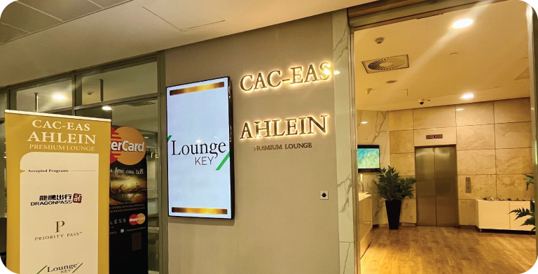 Terminal 3: The lounge is located at the beginning of Concourse G in Terminal 3. After passing through passport control, proceed straight ahead, turn right, and continue straight toward Concourse G. The lounge is situated next to the ABU AUF coffee store.